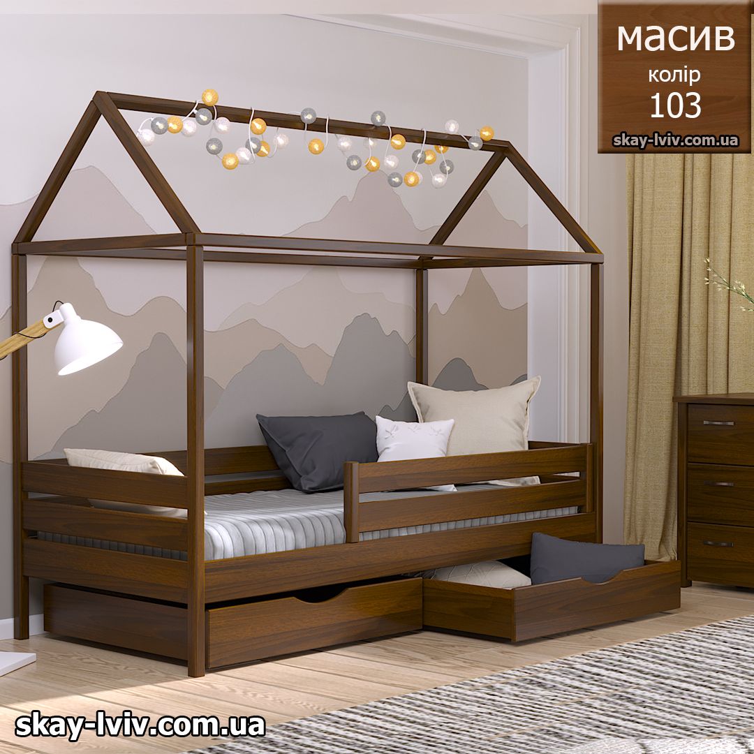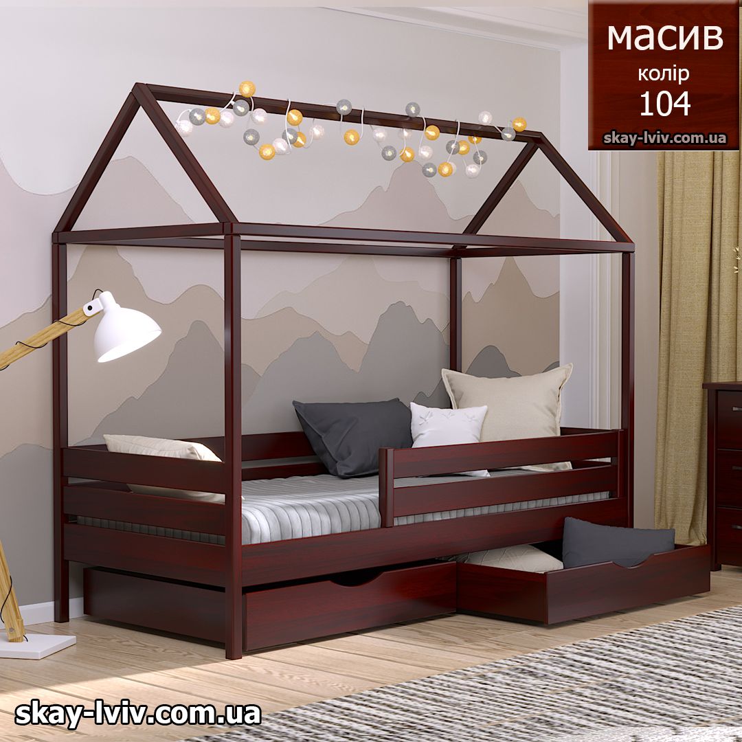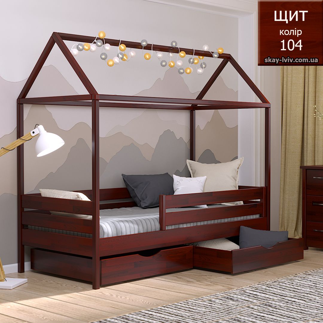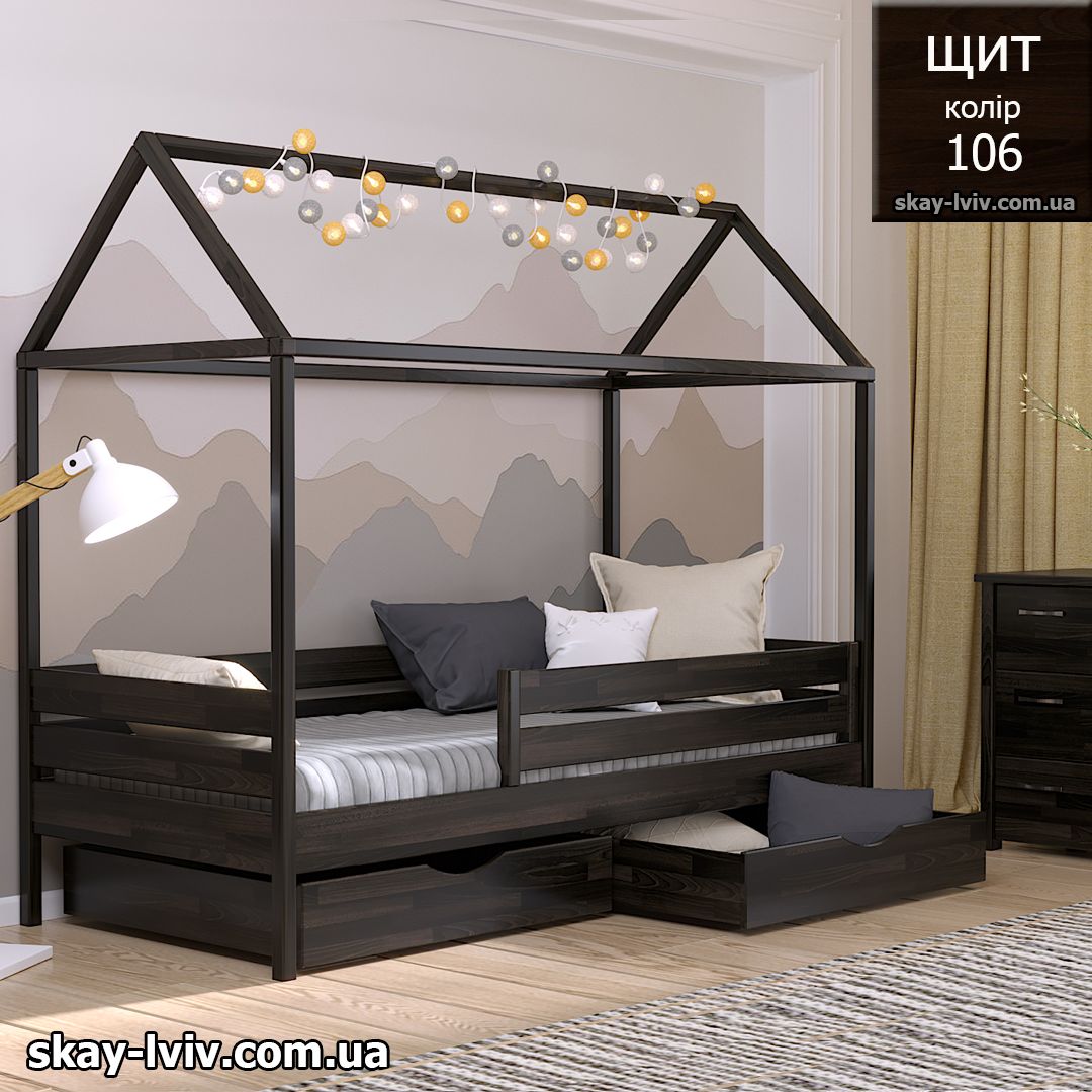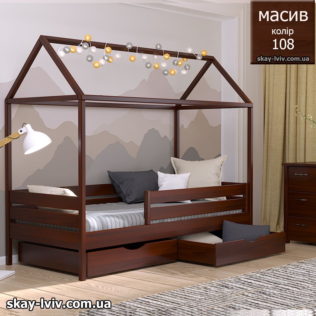- казкова модель для дітей які обожнюють створювати свої затишні схованки в будиночках, де вони можуть втілити свої фантазії та відчути себе в безпеці. Її унікальність полягає у верхній частині, виконаній у формі даху. Тут можна легко розстеляти ковдру або інші тканини, за мить перетворюючи ліжечко на магічний замок.АММІ ліжко хатинка також може бути доповнене зручними і просторими шухлядами (окрема опція), призначеними для зберігання іграшок або постільної білизни. За бажанням, можна замовити додаткову подвійну планку безпеки, забезпечуючи надійний захист малюка від потенційних падінь.Модель АММІ ліжко хатинка доступна у двох варіантах виконання – зі щита або масиву, і пропонується у двох розмірах – 80х190см або 90х190см та доступна у 8-ми базових однотонних відтінках. Але особливість полягає в тому, що в АММІ можна комбінувати білий колір з іншими кольорами палітри, що дає змогу легко та гармонійно доповнити цим ліжечком будь-який інтер’єр. Крім того, АММІ ліжко хатинка може бути виконане з білими ніжками, що додасть їй особливого шарму.