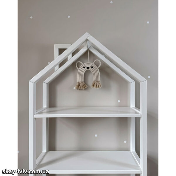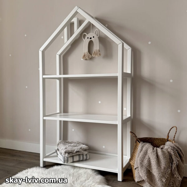 Етажерка дитяча Будиночок — це стилізована стійка для дитячих улюблених книжочок, іграшок та важливих дрібничок, яка не лише прикрасить кімнату, а й допоможе дитині привчатися до порядку в ігровій формі. . Зручні полиці створять порядок і водночас додадуть індивідуальності простору у дитічій кімнаті. Етажерка Будиночок стане чудовим доповненням до дитячої кімнати як для дівчинки, так і для хлопчика, а також вона неодмінно знайде своє місце і біля дитячого ліжечка