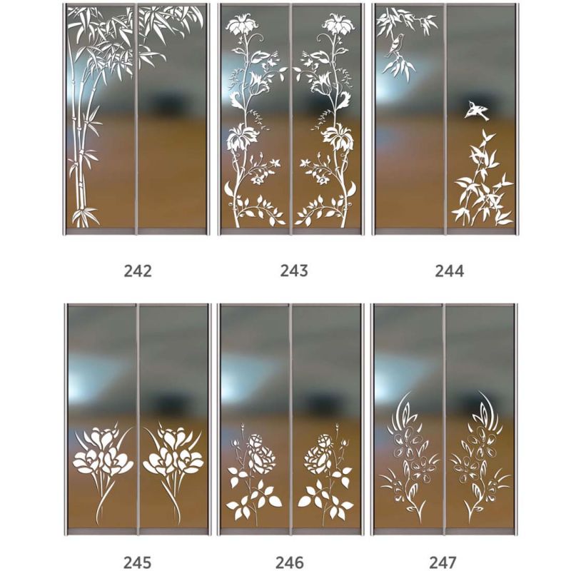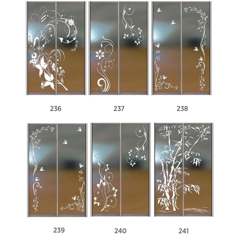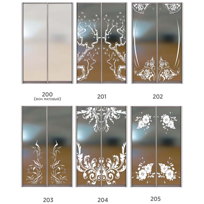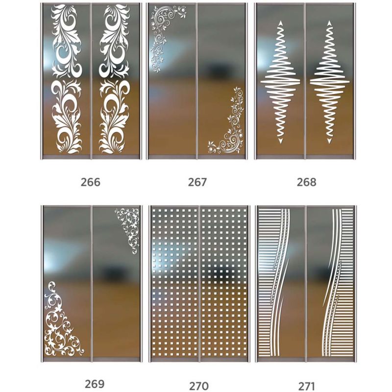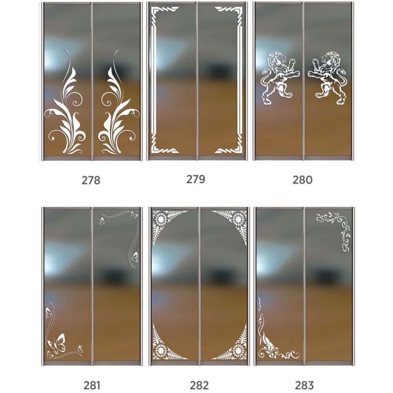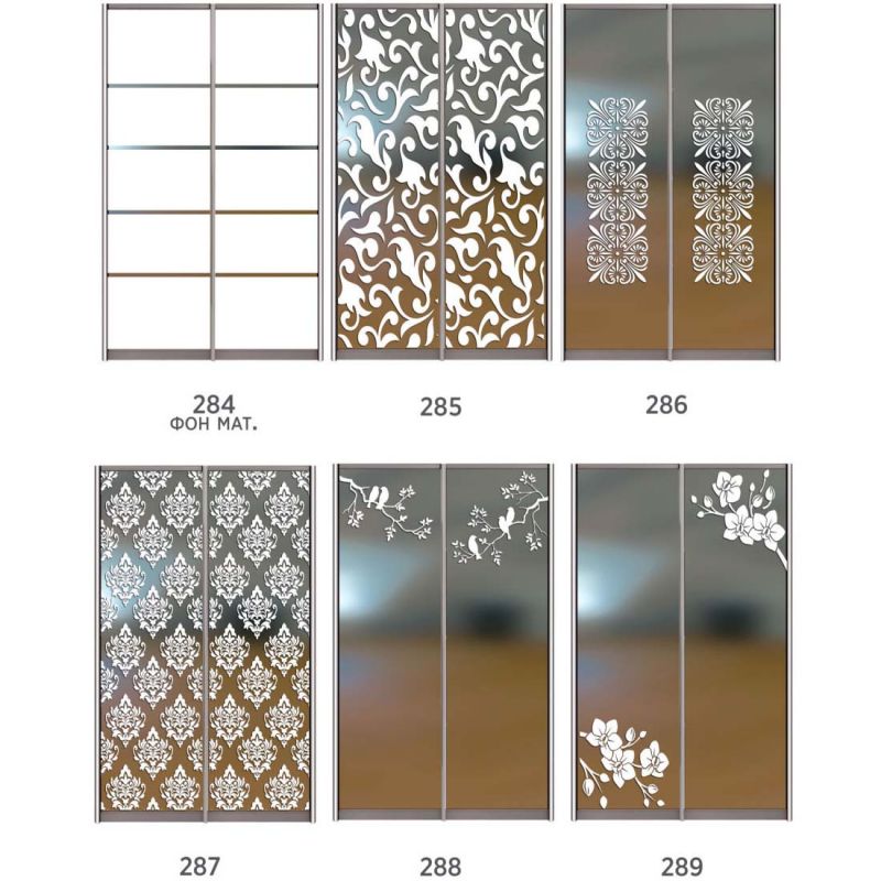 • У вартість комплекту шафи входять:  стандартний корпус з розсувною системою  у кольорі AL (алюміній) та два фасади: 1ХМ+1ХМ (художнє матування) .